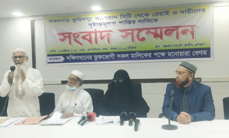 দক্ষিণখানে আশিয়ান সিটির ভূমি দখল ও সন্ত্রাসী আগ্রাসনের প্রতিবাদে সংবাদ সম্মেলন