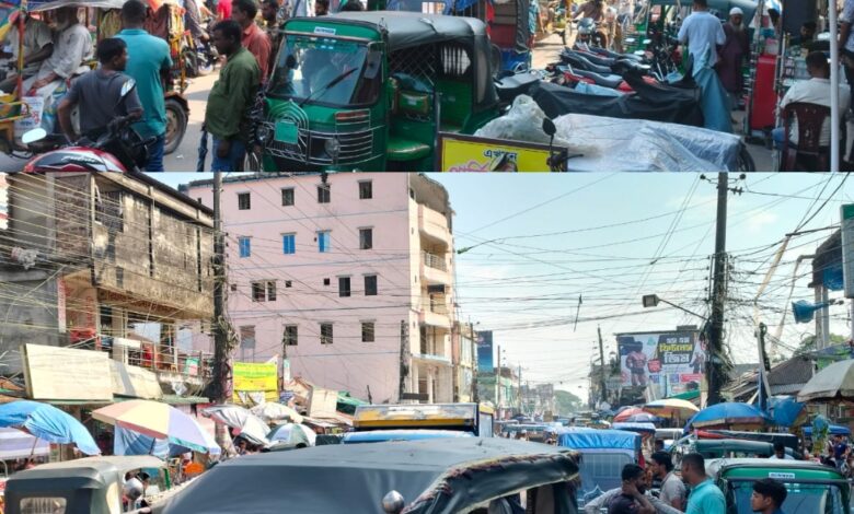 চরফ্যাশন শহর এখন যানজটের নগরী/ ‎হকার আর অবৈধ পার্কিংয়ে স্থবির প্রধান সড়ক