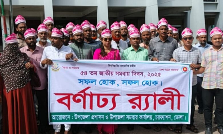 চরফ্যাশনে ৫৪তম জাতীয় সমবায় দিবস উপলক্ষে র্যালি ও আলোচনা সভা অনুষ্ঠিত