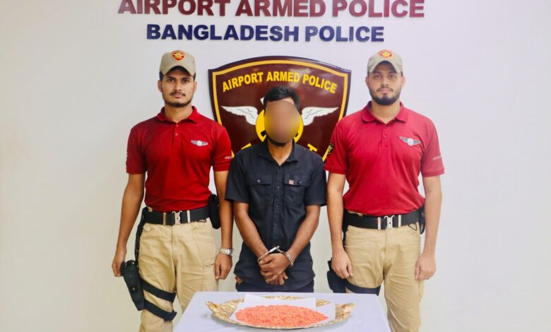 এয়ারপোর্টে ৬৩৭৮ পিস ইয়াবাসহ এক বিমানযাত্রীকে আটক করেছে এয়ারপোর্ট আর্মড পুলিশ ব্যাটালিয়ন
