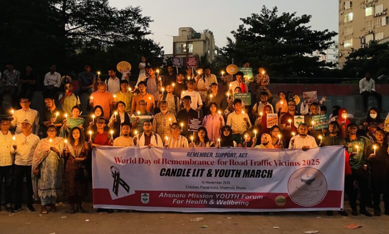 টাইমস ২৪ ডটনেট : আগামী জাতীয় সংসদ নির্বাচনে রাজনৈতিক দলগুলোর নির্বাচনী ইশতেহারে নিরাপদ সড়ক নিশ্চিতকরণের অঙ্গীকারের দাবি জানিয়েছে তরুণরা। ‘ওয়ার্ল্ড ডে অব রিমেমব্রেন্স ফর রোড ট্রাফিক ভিক্টিমস’ উদযাপন উপলক্ষে আজ রবিবার (১৬ নভেম্বর) বিকাল ৫ টায় রাজধানীর শ্যামলী মাঠের সম্মুখ সড়কে আহ্ছানিয়া মিশন ইয়ুথ ফোরাম ফর হেলথ এন্ড ওয়েলবিং- এর আয়োজনে রোডক্র্যাশ হতাহতদের স্মরণে তরুণ পদযাত্রা ও মোমবাতি প্রজ্বলনে এ কথা বলেন উপস্থিত তরুণ শিক্ষার্থীরা।