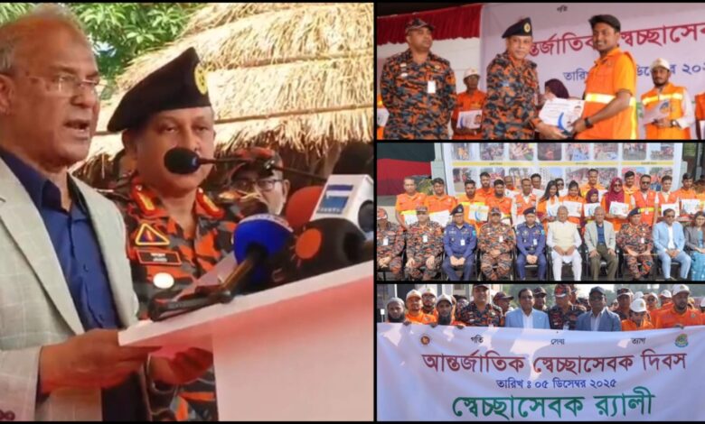 এস.এম.নাহিদ: আন্তর্জাতিক স্বেচ্ছাসেবক দিবস–২০২৫ উদযাপন করেছে ফায়ার সার্ভিস ও সিভিল ডিফেন্স। শুক্রবার (৫ই ডিসেম্বর)নারায়ণগঞ্জের রূপগঞ্জে পূর্বাচলের মাল্টিপারপাস ট্রেনিং গ্রাউন্ডে দিনব্যাপী নানা আয়োজনের মধ্য দিয়ে এ কর্মসূচি পালন করা হয়।অনুষ্ঠানে প্রধান অতিথি হিসেবে উপস্থিত ছিলেন স্বরাষ্ট্র মন্ত্রণালয়ের উপদেষ্টা লেফটেন্যান্ট জেনারেল মো. জাহাঙ্গীর আলম চৌধুরী (অব.)। বিশেষ অতিথি ছিলেন প্রধান উপদেষ্টার বিশেষ সহকারী মো. খোদা বখস চৌধুরী। ফায়ার সার্ভিস ও সিভিল ডিফেন্সের মহাপরিচালক ব্রিগেডিয়ার জেনারেল মুহাম্মদ জাহেদ কামালসহ সংশ্লিষ্ট দপ্তরের ঊর্ধ্বতন কর্মকর্তারা অনুষ্ঠানে যোগ দেন।