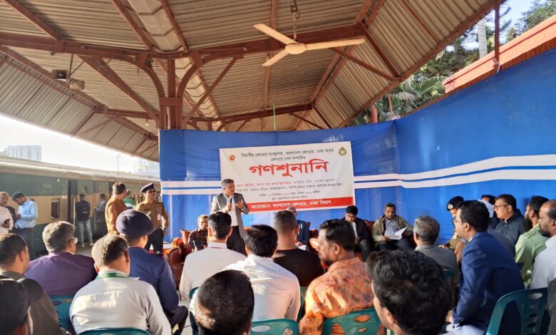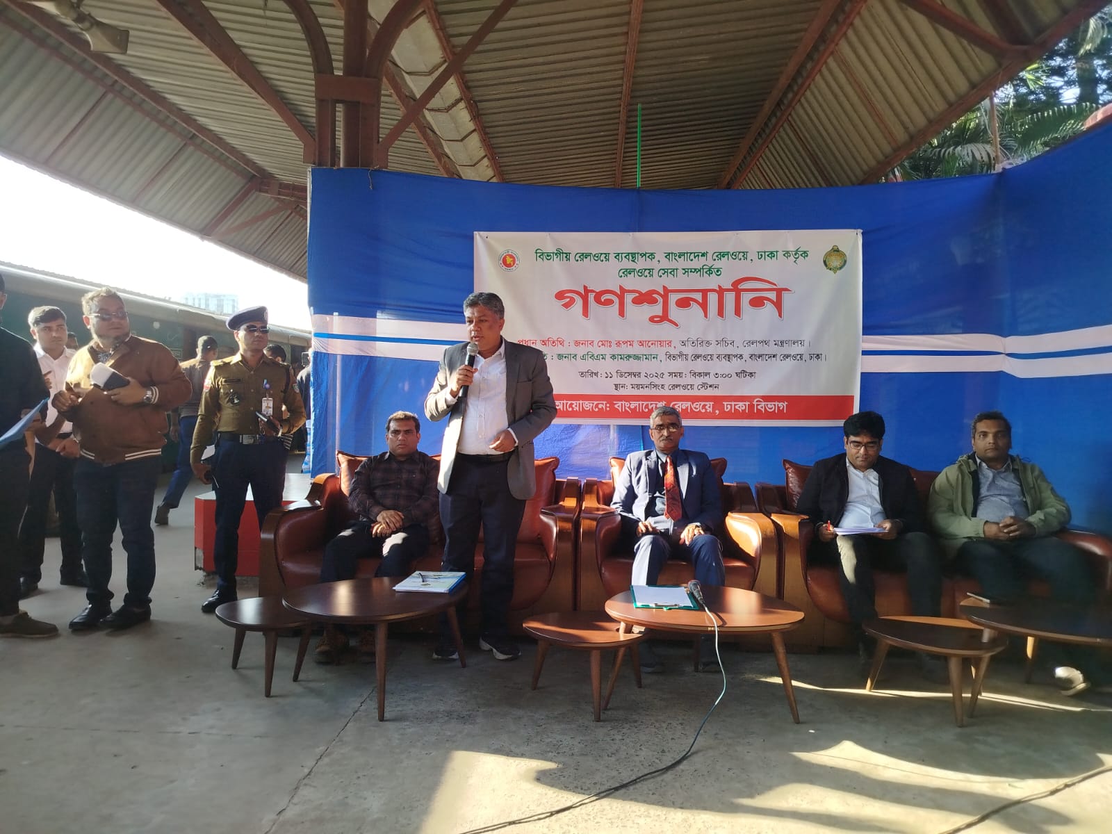 ময়মনসিংহ রেলওয়ে স্টেশন প্রাঙ্গনে বিদ্যমান রিসোর্স ও সীমাবদ্ধতা অনুধাবন পূর্বক যাত্রীসাধারণ ও অংশীজনের মতামত বা অভিযোগ বিবেচনায় নিয়ে প্রদত্ত সেবার মান বৃদ্ধির লক্ষ্যে বিভাগীয় রেলওয়ে ব্যবস্থাপক ঢাকা কর্তৃক গণশুনানির আয়োজন করা হয়। বৃহস্পতিবার বিকাল ৩ টায় শুরু হয় চলে সন্ধা পর্যন্ত এ গণশুনানি। এতে প্রধান অতিথি হিসেবে উপস্থিত ছিলেন রেলপথ মন্ত্রণালয়ের অতিরিক্ত সচিব মো. রূপম আনোয়ার। সভাপতিত্ব করেন ঢাকা বিভাগীয় রেলওয়ে ব্যবস্থাপক এবিএম কামরুজ্জামান।
