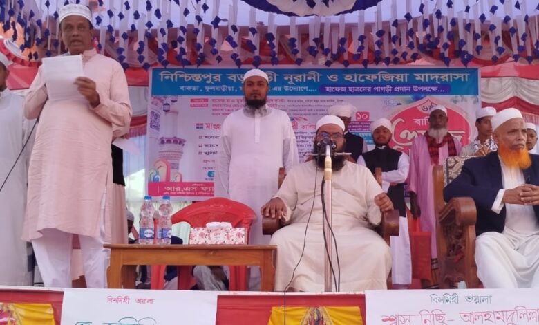 গত বুধবার (১০ ডিসেম্বর) ময়মনসিংহের ফুলবাড়ীয়া উপজেলা ৭নং বাক্তা ইউনিয়নের নিশ্চিন্তপুর বড়বাড়ী নূরানী ও হাফেজিয়া মাদ্রাসার হাফেজ ছাত্রদের পাগড়ী প্রদান উপলক্ষে ৬ষ্ঠ বার্ষিক ওয়াজ মাহফিলে প্রধান অতিথির বক্তব্যে অধ্যক্ষ আর.জে.এম সেলিম রেজা তালুকদার এসব কথা বলেন। এতে বিশেষ অতিথি হিসেবে বক্তব্য রাখেন বাক্তা ইউনিয়ন পরিষদের নন্দিত চেয়ারম্যান মোহাম্মদ ফজলুল হক মাখন।