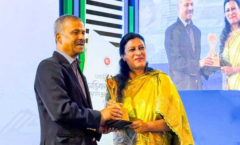 অনুষ্ঠানে প্রবাসী কল্যাণ ও বৈদেশিক কর্মসংস্থান মন্ত্রণালয়ের মাননীয় উপদেষ্টা ড. আসিফ নজরুলের নিকট থেকে বাংলাদেশ কৃষি ব্যাংকের ব্যবস্থাপনা পরিচালক জনাব সঞ্চিয়া বিনতে আলী অ্যাওয়ার্ড গ্রহণ করেন।