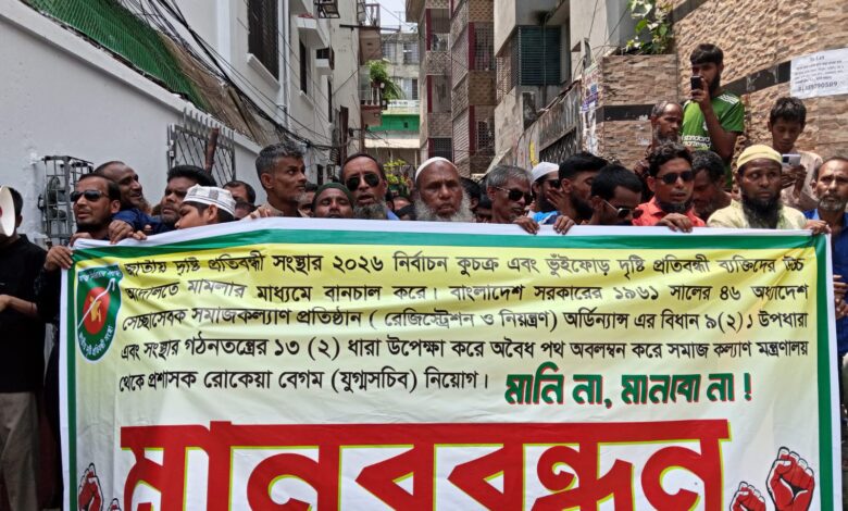 জাতীয় দৃষ্টি প্রতিবন্ধী সংস্থার‘অবৈধ প্রশাসক’ অপসারণ দাবিতে মানববন্ধন